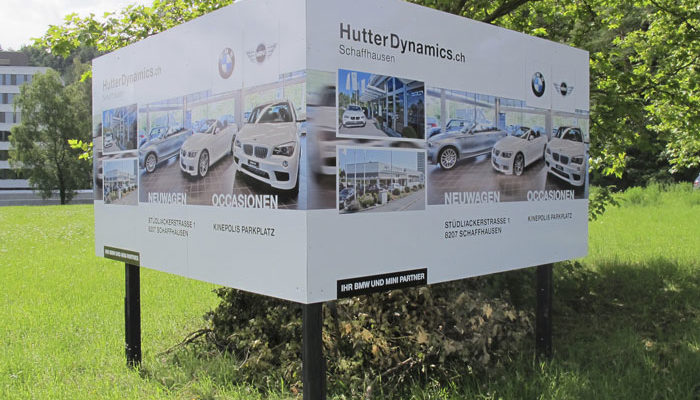 Bei uns erhalten Sie Baureklame-Tafeln aus Alu, Dibond oder Blachenmaterial – robust und wetterfest.